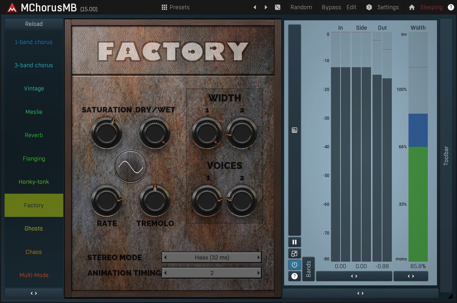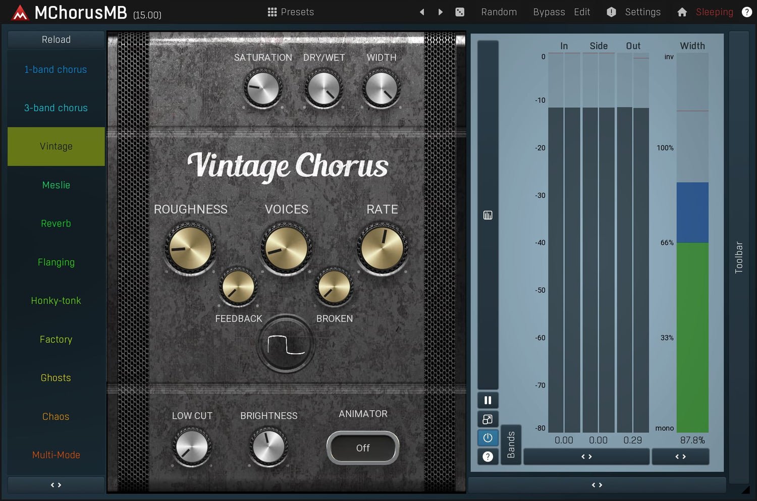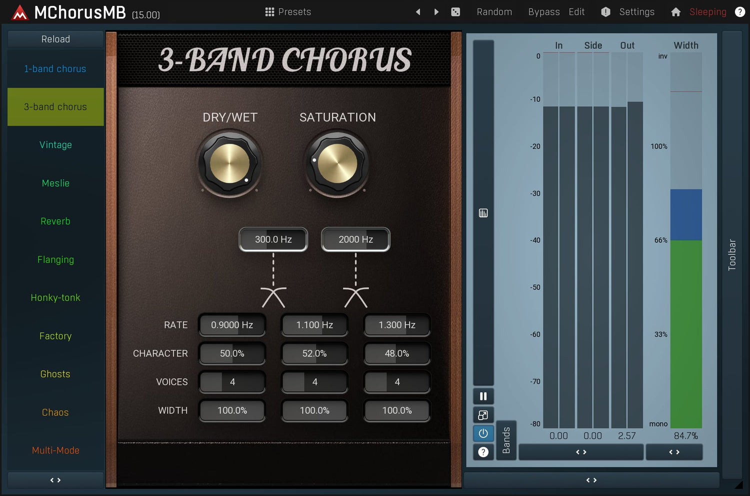 Chorus is an essential tool for guitars and keyboards to bring out space and width. MMultiBandChorus is not only potentially the best sounding chorus effect on the market, but also the most versatile one. If you aim for an ultimate chorus with both audio quality and features, then this plugin is what you have been searching for.