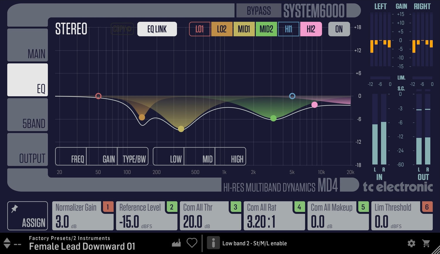MD4 HD NATIVE is top of the line 5 band high-resolution dynamics processing with 6 band highly flexible parametric EQ and modern True-Peak Limiting in Mono, Stereo and Mid/Side operation. It features ultra-transparent Downward, Parallel and low levels focused DXP compression.
