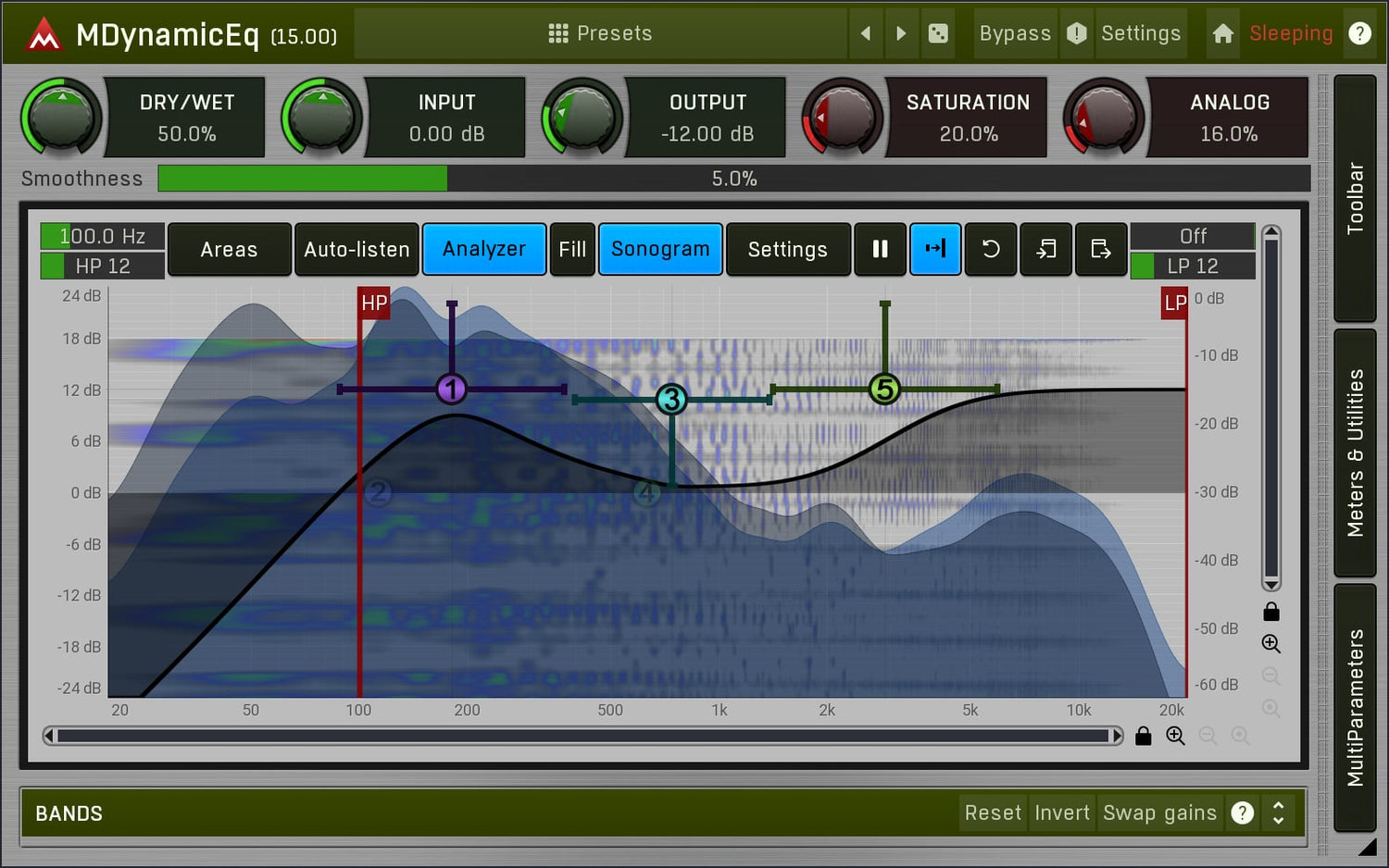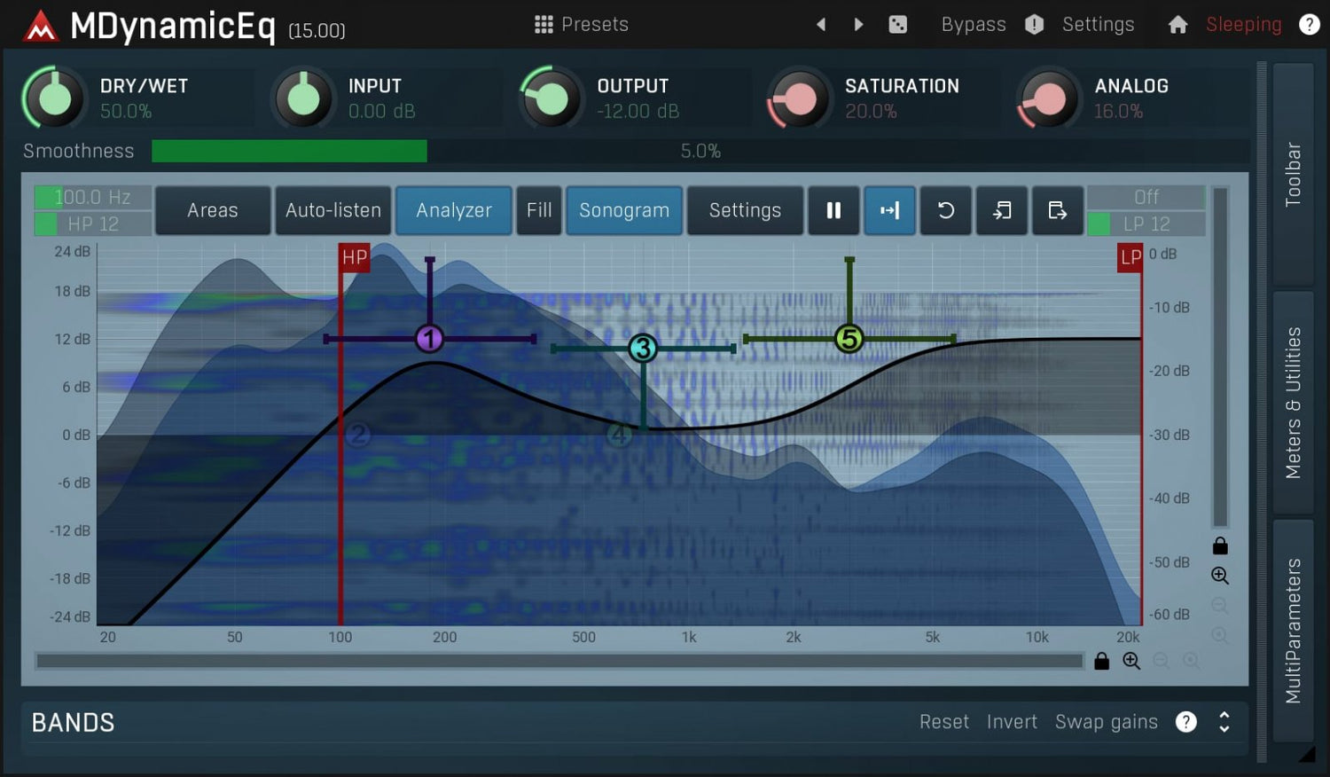 Equalizing is probably the most important task, so you should get the best tool out there! MDynamicEq, the little brother of MAutoDynamicEq, is an unbelievably transparent and musical sounding equalizer with a gorgeous interface stuffed with amazing features. It pushes the technology forward by introducing dynamic processing!