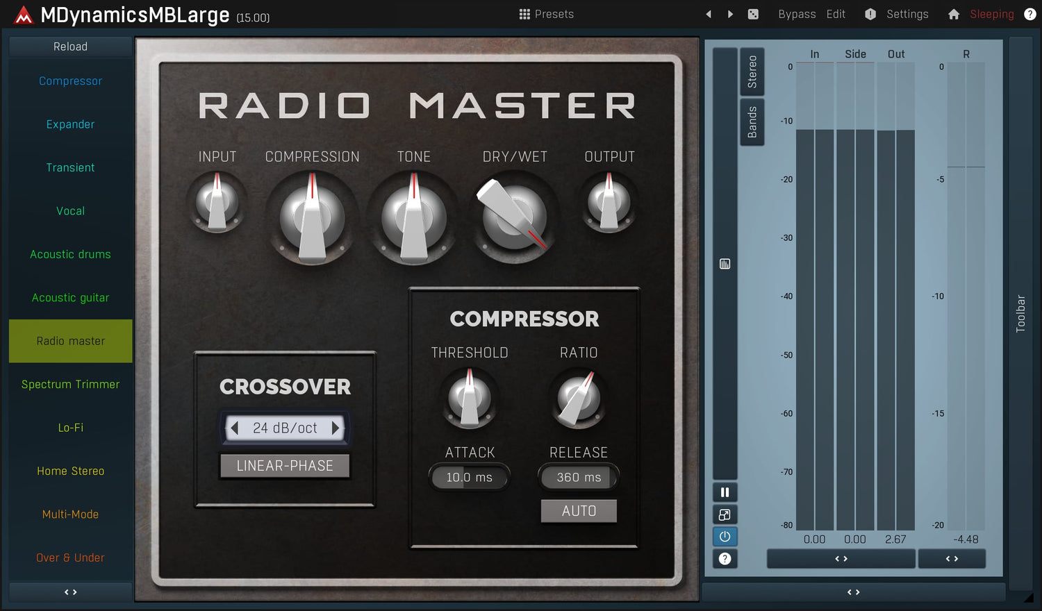 Multiband dynamic processing can do things that would otherwise be impossible. If you are looking for a weapon which not only sounds great but is extremely versatile, MDynamicsMB is the ultimate all-in-one solution!