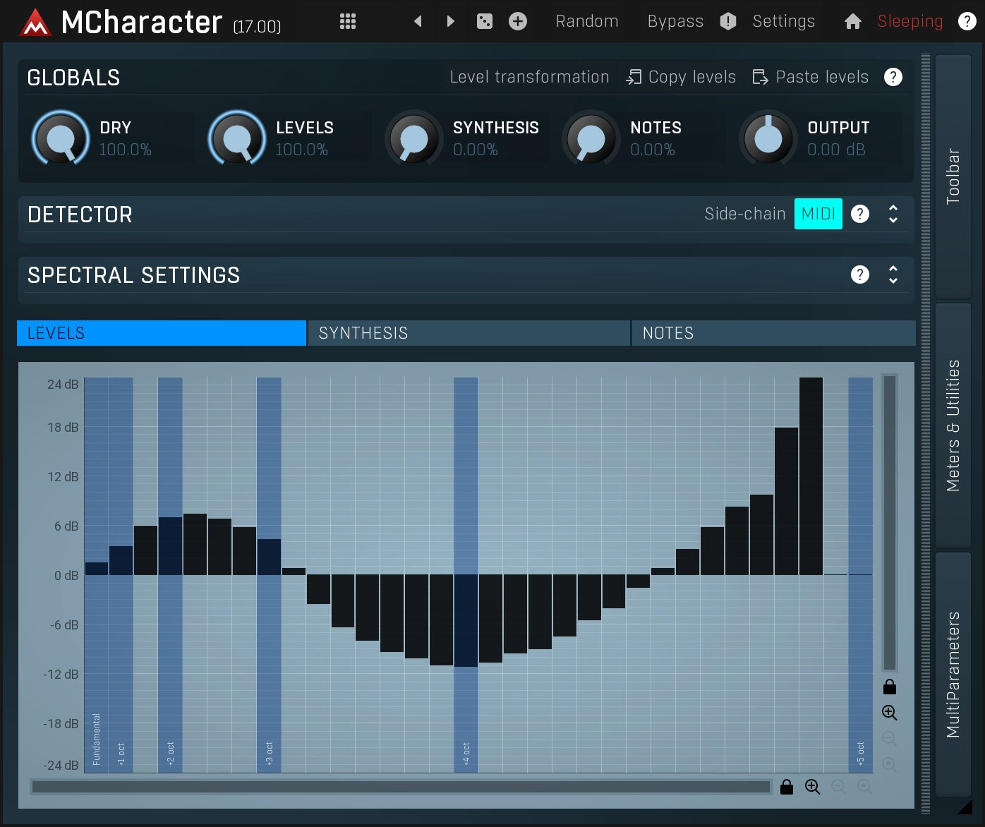 What happens if some harmonics are not present at all in the audio? Or, perhaps, you want to generate a sub-octave? Well, up to now it was pretty much impossible, but MCharacter makes this very simple. It lets you synthesize harmonics & tones that are not there using 2 simple graphs. Just say which harmonics and how much you want of each!