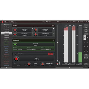 MDistortionMB implements a generalized amp simulation, rather than providing models of particular existing amps. It can simulate a whole range of amps and contains a set of 12 predefined sounds organized by styles, including metal or rock. You can customize each sound with an exhaustive set of controls and an equalizer. It may not sound like your favorite amp, but it might sound better.