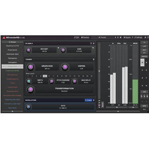 MGranularMB is an extremely versatile granular resynthesizer, which can make your lead sound like a pad, make your drums more powerful and much more. The plugin cuts your audio material into small pieces ("grains") and creates an entirely new sound from them. In multiple bands of course.