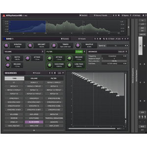 From gating to glitching, repeating hits to scratching, all with stunning audio quality and up to 6 distinct bands, that's MRhythmizerMB. A unique time manipulation effect that uses an integrated sequencer to control time, volume and filters. MRhythmizerMB brings your music to life, say goodbye to boring audio performances!