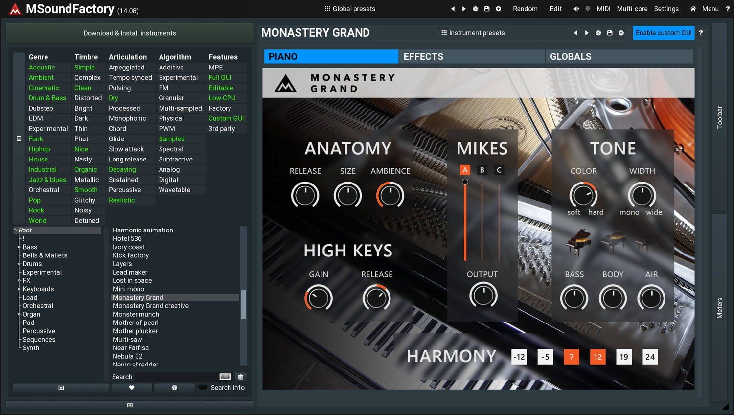 Imagine an 808 bass, you'd buy a dedicated plugin for it, right? Well, you don't need to, because that's an instrument inside MSoundFactory. Same as a grand piano, an electric piano, an organ, various synths, basses etc. And we are making more as we speak!