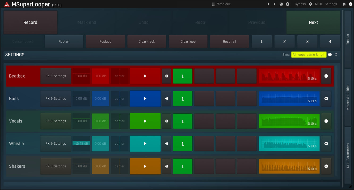MSuperLooper is the next generation multitrack looping tool designed for live performances. Capturing ideas and getting creative was never easier. It is quick, versatile and offers endless options.