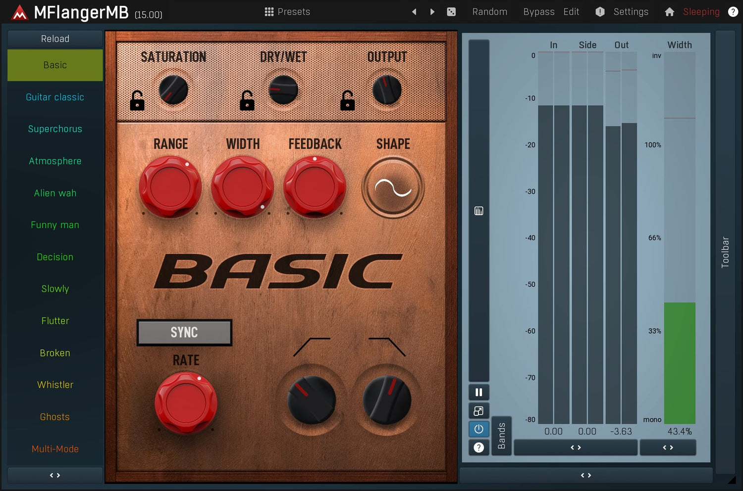 Flangers are tools with a specific character and are indispensable for guitars, and a wide range of other instruments. MFlangerMB is the top class representative, which will beat every other flanger on the market in terms of both audio quality and features.
