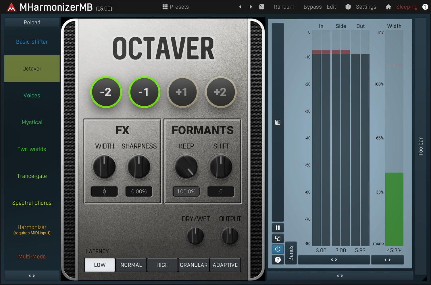 Make one instrument sound like many musicians at once, create harmonies, widen or enhance recordings, add bass drum subharmonics plus much more. That's MMultiBandHarmonizer, a pitch shifting and multi-voice harmonizing plugin.