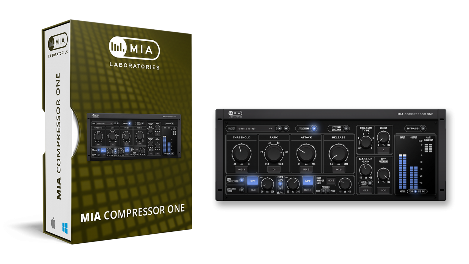 Carefully designed to act like the much esteemed analog compressors of past decades, MIA Compressor One offers the distinctive sound of MIA Laboratories.