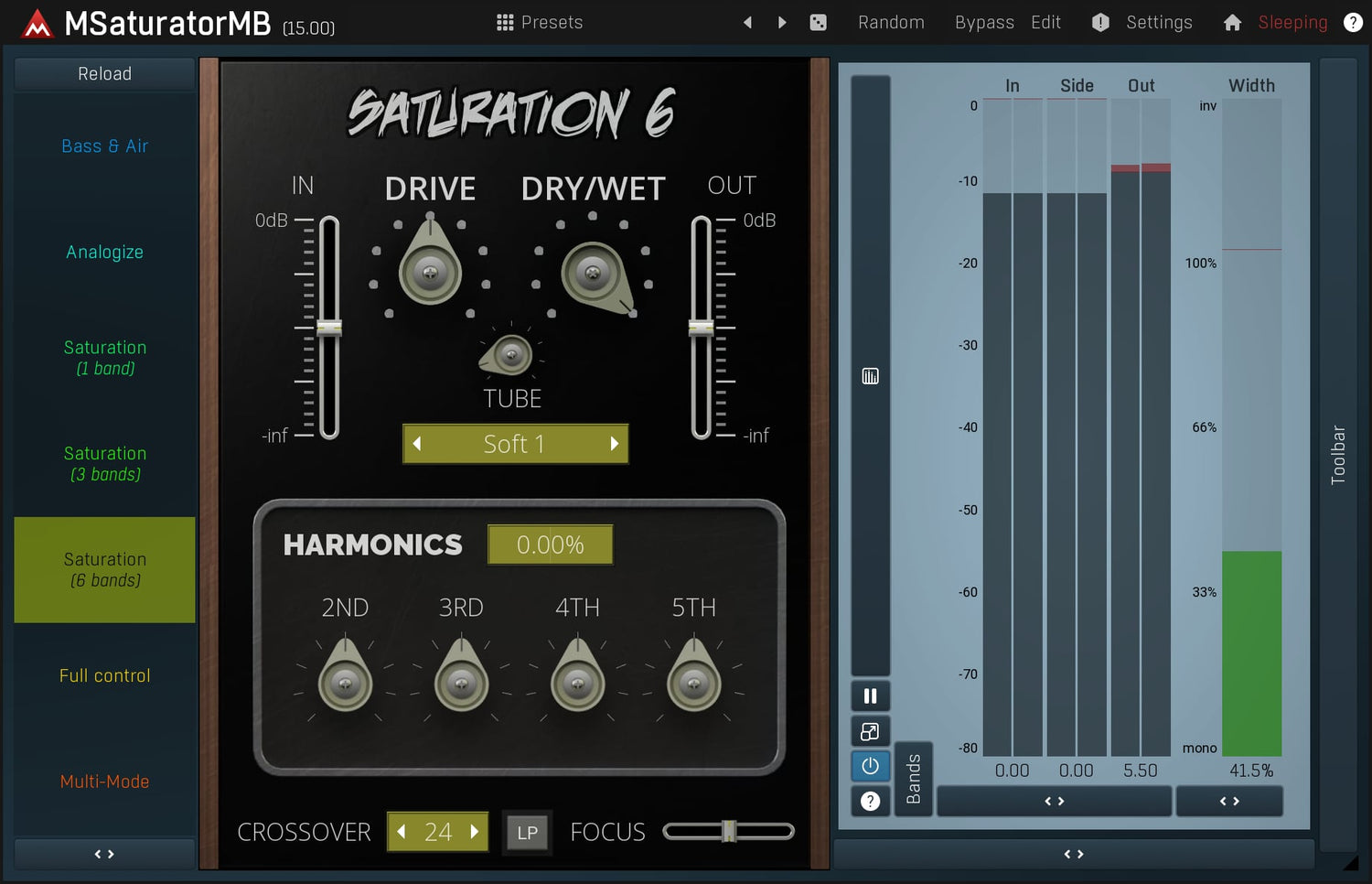 Saturation is a very special type of smooth distortion known from tubes and tapes. It can provide some harmonic flavour, improve bass and sub-bass content and much more. MSaturatorMB is an extremely musical and versatile saturation plugin, which also contains a digital harmonic generator. MSaturatorMB combines the best from both the analogue and digital worlds.