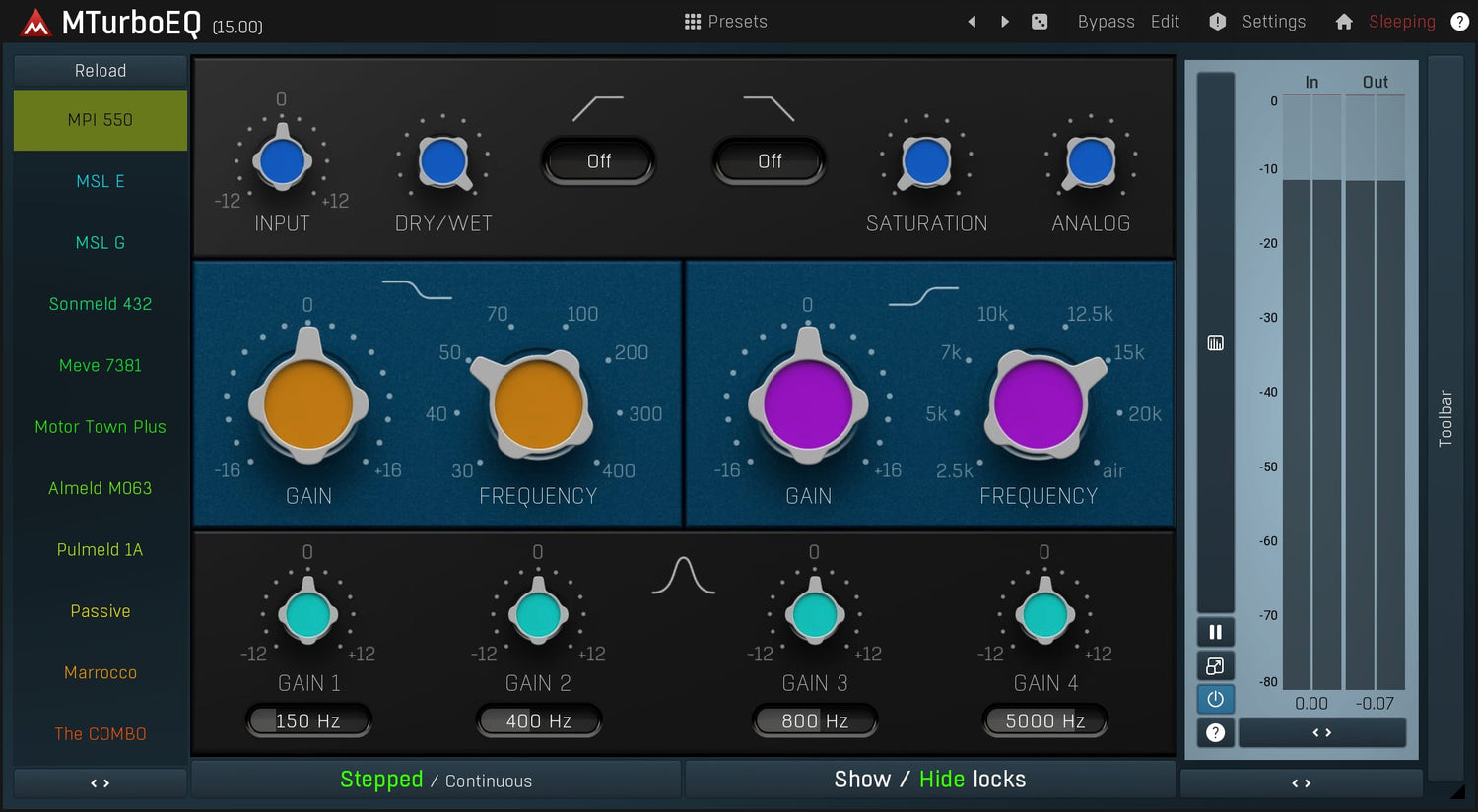 MTurboEQ is a unique vintage-style equalizer inspired by most of the well-known classic hardware. It's not one of them, it's all of them! For quick and easy equalization with pristine results.