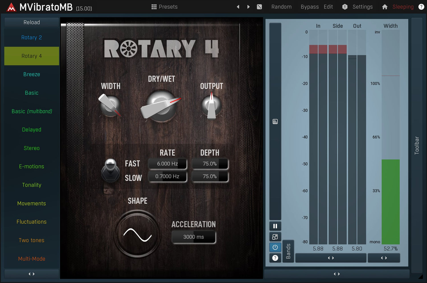 Vibrato effects are rarely used, but this one is different. MMultiBandVibrato is also a powerful rotary simulator, which is perfect for everything from organs to guitars. And the audio quality is just the best on the market.