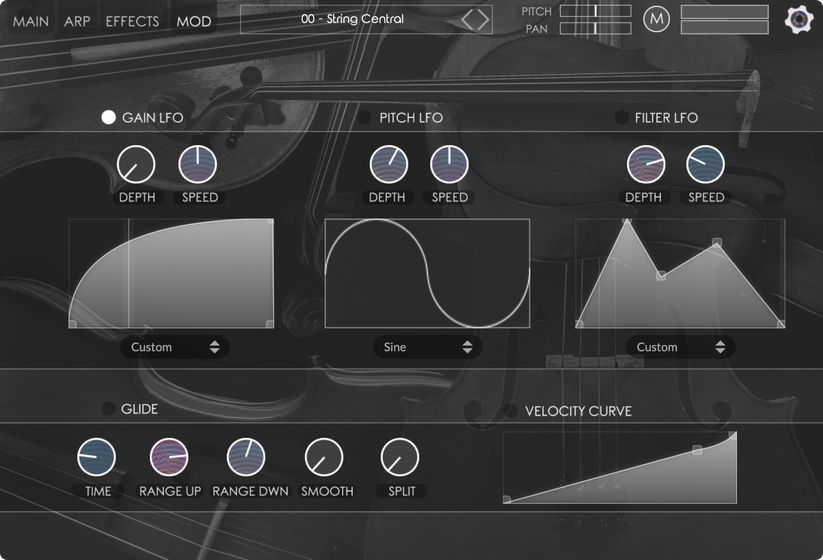 - 3 LFO’s (Gain LFO, Pitch LFO, and Filter LFO) with 6 shape options