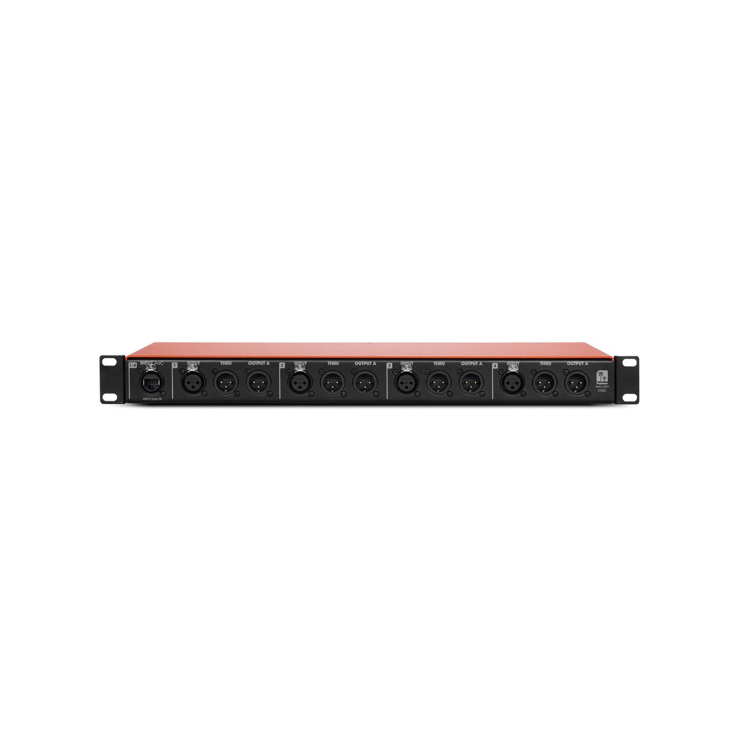 Each of the four channels features one THRU output for passing on phantom power, as well as two galvanically isolated, transformer-balanced XLR outputs. The design includes impedance matching and resistor-decoupled isolation to ensure clean signal routing, eliminate ground loop noise and preserve phantom power functionality. All 4 channels can also be routed via a single Cat cable, which is especially useful in fixed installations with limited or discreet cable runs.