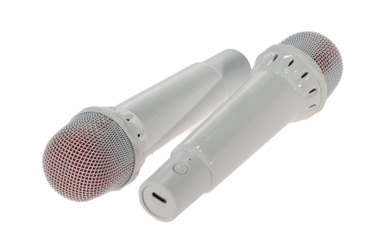 PartyZone Karaoke Set with 2 Microphones (White) – Wireless sound and fun for any party