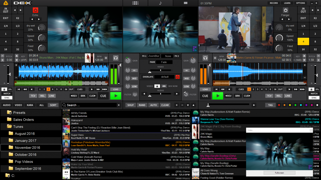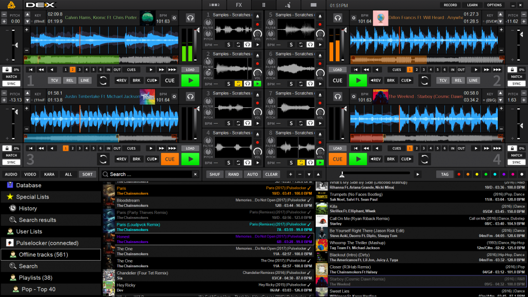DEX 3 is professional DJ Software for MAC and Windows that allows you to go far beyond simple DJing. The most versatile do-it-all DJ software available, DEX 3 enables you to intuitively mix music, music videos and host karaoke with precision. Why settle for a product that has only one function or use multiple products? DEX 3 is the only DJ software with all the features you require to make any every gig a total success. With our beat-grid based automatic beat mixing and key detection it’s easy to blend tracks, allowing you to focus on the other aspects of your mix. Your audience will enjoy superior sound quality made possible by DEX 3’s industry-leading custom sound engine whether your mixing live or using automix. Since DEX 3 offers no-latency playback and support for today’s hottest DJ controllers; loops, hot cues, and all playback features are ultra-responsive. DEX 3 allows you to create mixes from your own music and music video library and/or iTunes using just a keyboard or mouse, or one of the 100+ supported DJ controllers. Download DEX 3 today and cue up your imagination – DEX 3 is the total DJ mixing software solution. Now with TIDAL Streaming Support!