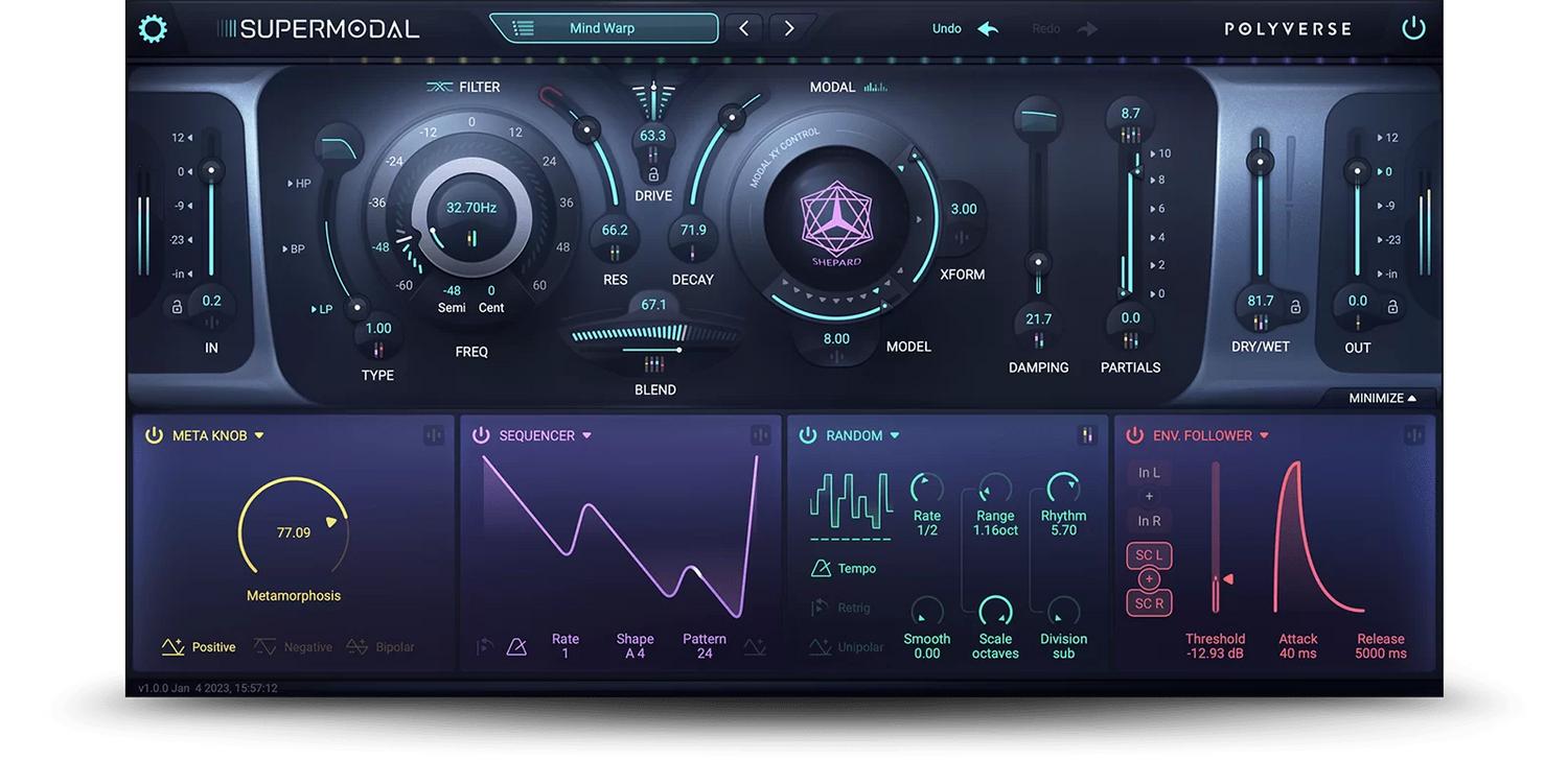 Supermodal is a modal filter with unparalleled sound design capabilities. It is a “Meta-filter” that utilizes hundreds of surgically precise bandpass filters to model the resonant characteristics of various objects.