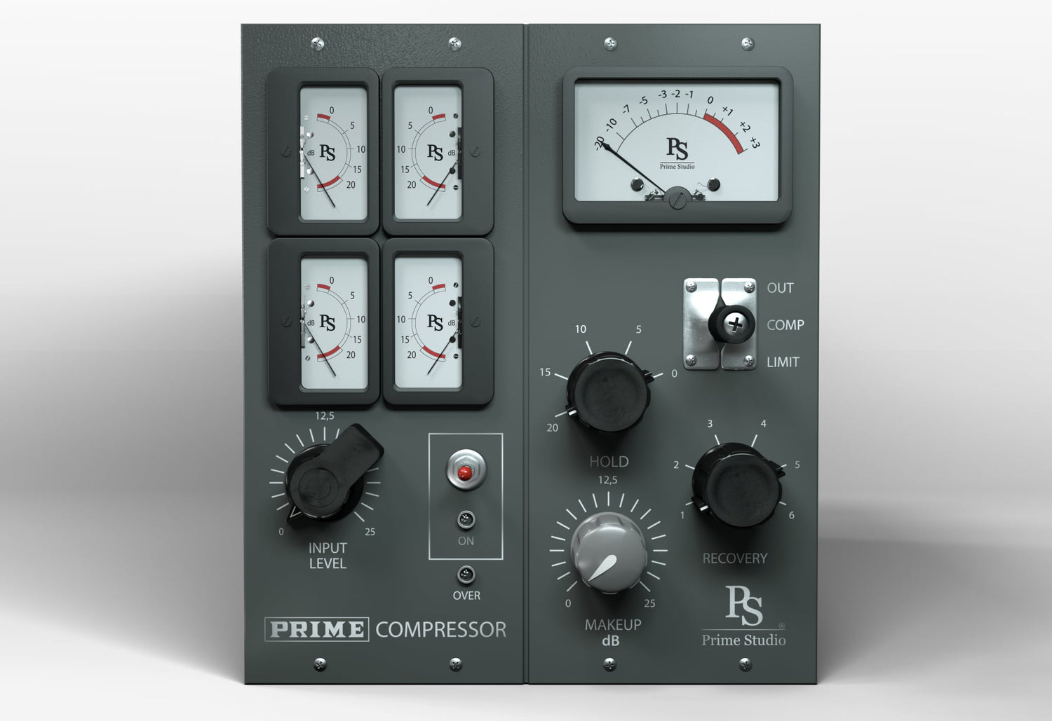 Due to its characteristically sounding compression, one of the rarest and highest sought after tools in the analog domain has been model for Prime Studio® Compressor. Yet having an easy and fast to set up tool giving your tracks warmth and punch only vintage audio gear can offer, now you have the spice available which has been missing in your sound kitchen.Offering total control over input and output signals and gain reduction by vintage style VU meters you can fine tune your sound using makeup gain, hold and recovery controls as well as switching the unit from acting as a compressor or limiter. Single channel treatment, parallel compression or even used on your master bus Prime Studio® Compressor will enhance your tracks. Use the „ECO“ switch for deactivating the preamp stages saving CPU power. Included is also a „Live“ version which is lighter on CPU bypassing the harmonic distortion functionality completely and a „Zero Latency“ version when used in your tracking setup.