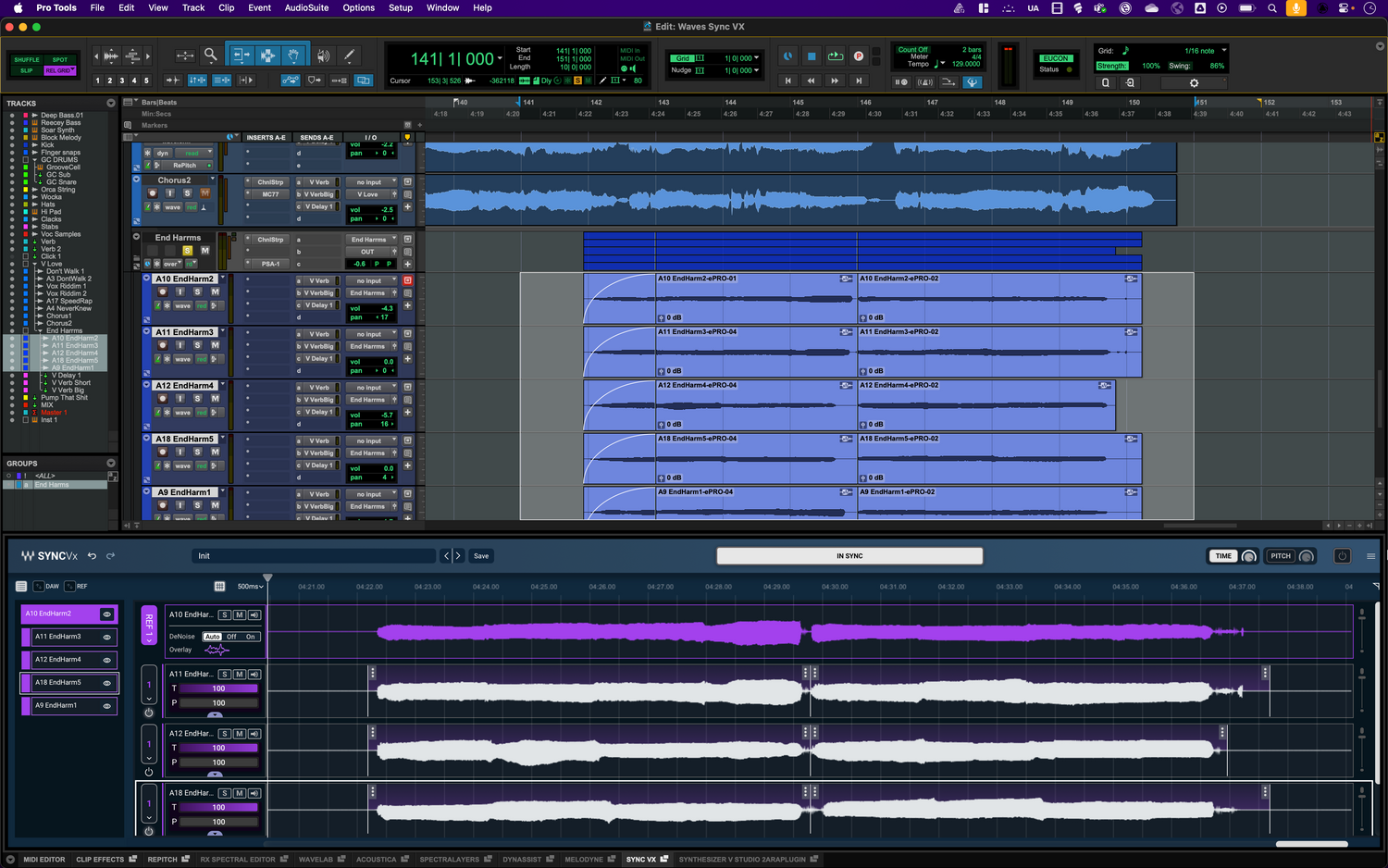 • Tweak audio timing and pitch - Easily fix timing, beat match audio, and correct notes with Elastic Audio. Or with Melodyne, RePitch, and Revoice Pro now integrated directly into Pro Tools via ARA 2, you can quickly manipulate pitch and time in real time—without roundtripping audio.