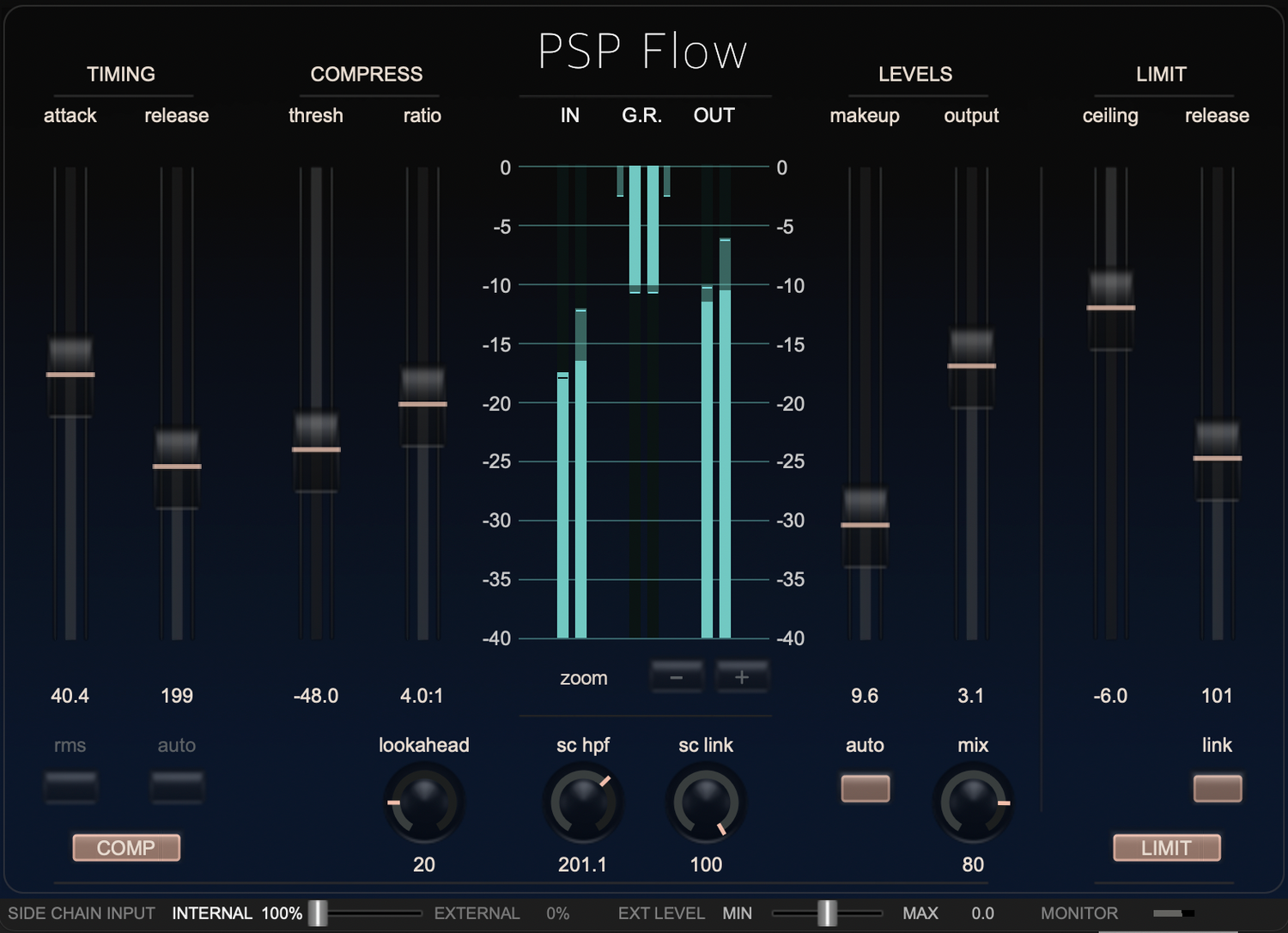 PSP Flare is a tool designed for smooth and musical compression across a variety of tracks and groups. The base algorithm and inspiration for the compressor were provided by Paolo Pasquariello, a talented and gifted Italian post-production sound engineer. While it was specifically designed for film and TV/video post-production, its unique behavior can deliver excellent results in almost any application.
