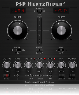 PSP HertzRider2 is the successor to the original PSP HertzRider frequency shifter. This update benefits from algorithm optimizations, and adds numerous significant new features. PSP HertzRider 2 been designed to be as simple as possible, to take as few resources as possible, and to incur only very slight (and frequency dependent) latency.