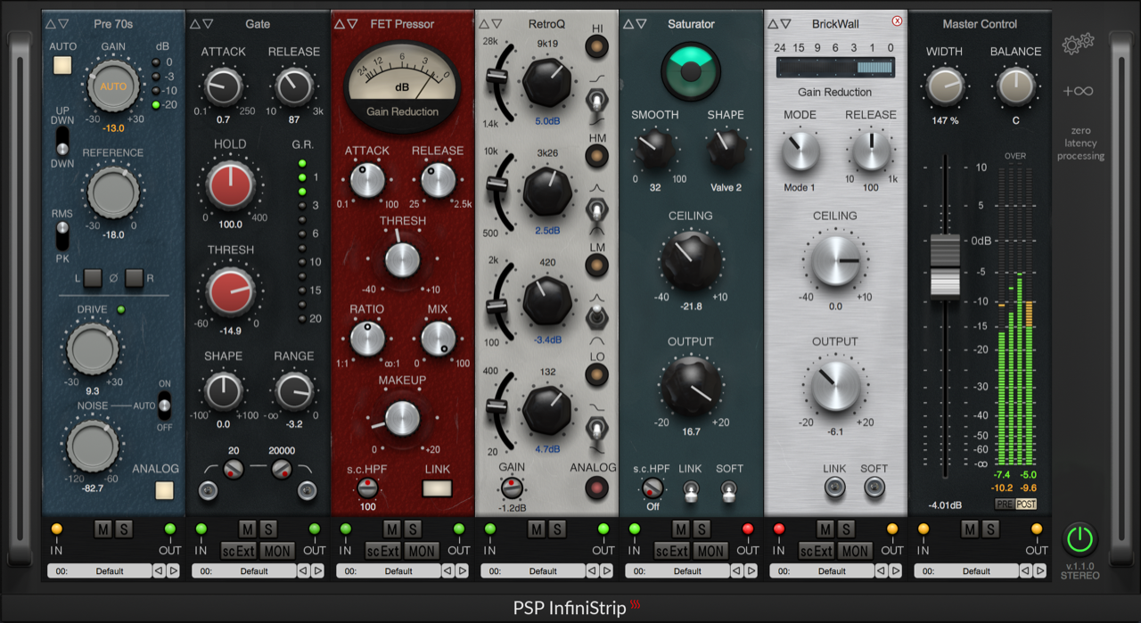 PSP InfiniStrip is part of our series of Zero Latency Processing plug-ins; making it ideal for situations such as live monitoring, live broadcast production, and use while tracking.