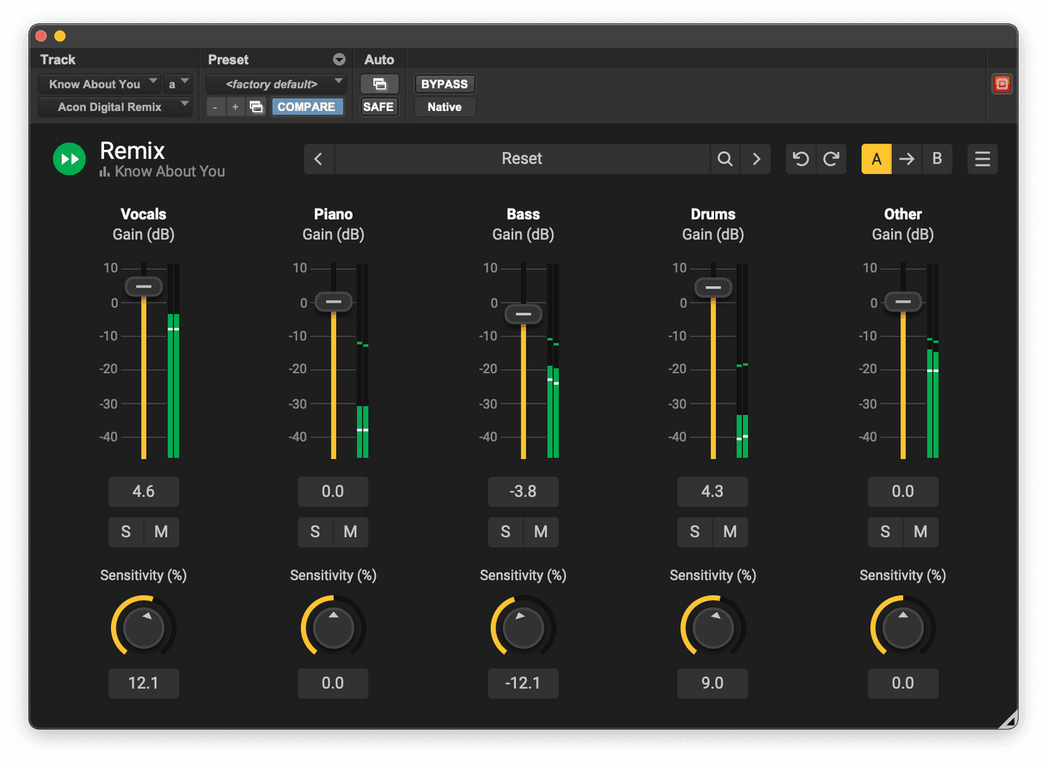 - Sensitivity controls for detection of each stem