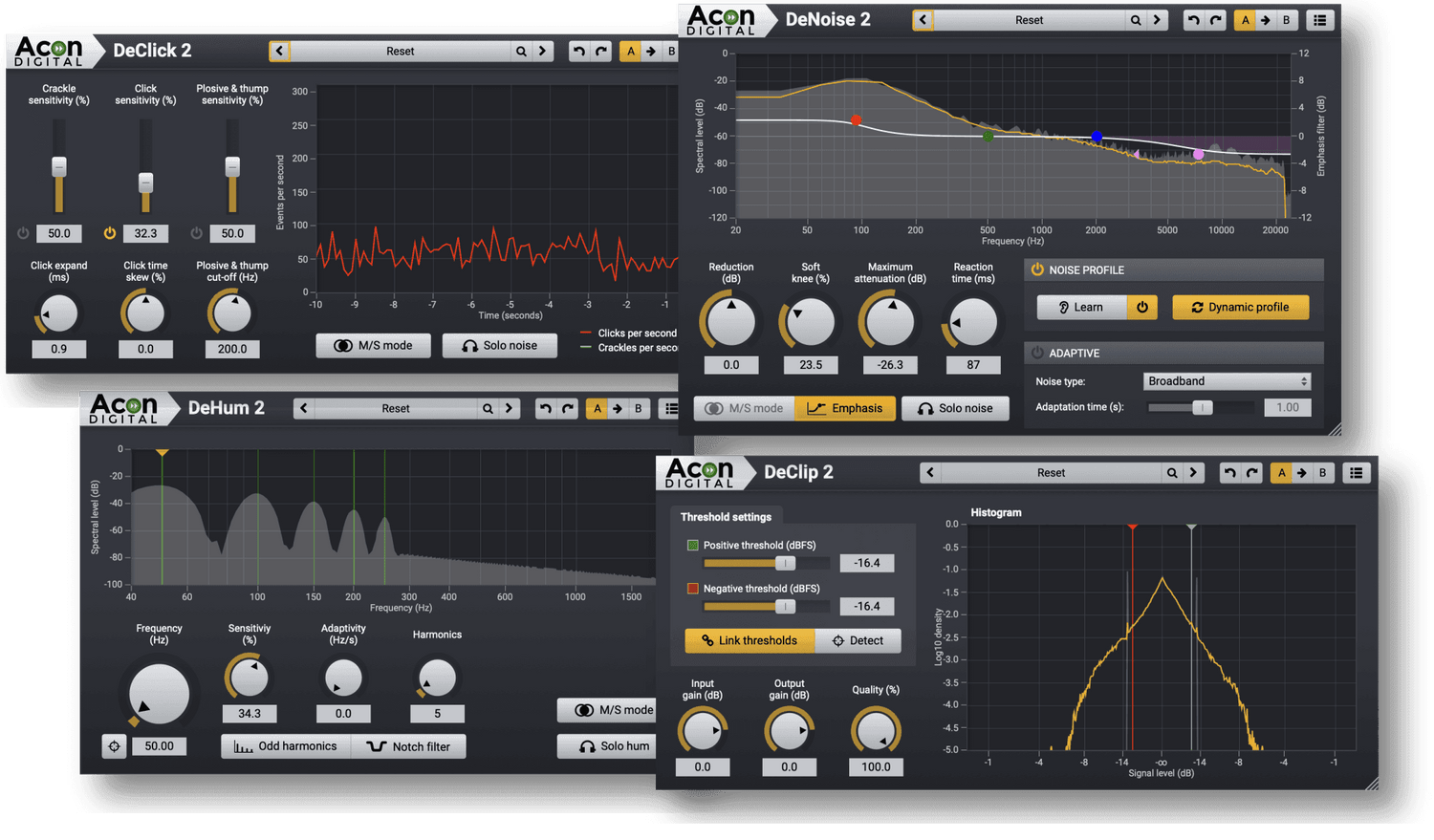 Discover our Restoration Suite, a game-changing collection of four advanced audio restoration plugins designed to breathe new life into your recordings! Whether you're dealing with hiss, wind noise, hum, buzz, clicks, or other unwanted noise, this suite has you covered.