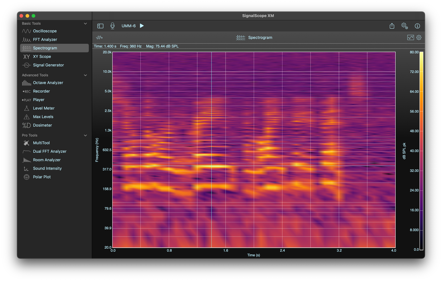 - Analyze signals coming from any available audio input device connected to your Mac.