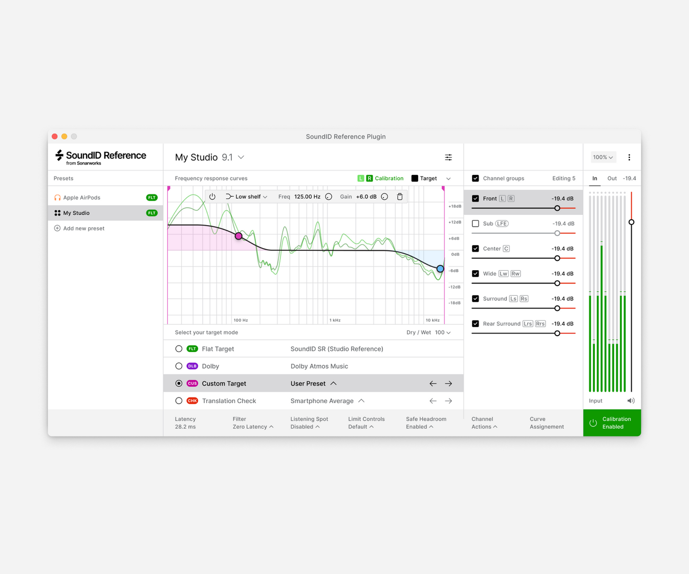 - Control your target sound: 1. Flat target curve used by over 100k music creators globally. 2. Customise your target by limiting calibration frequency range or adjusting the target curve manually.
