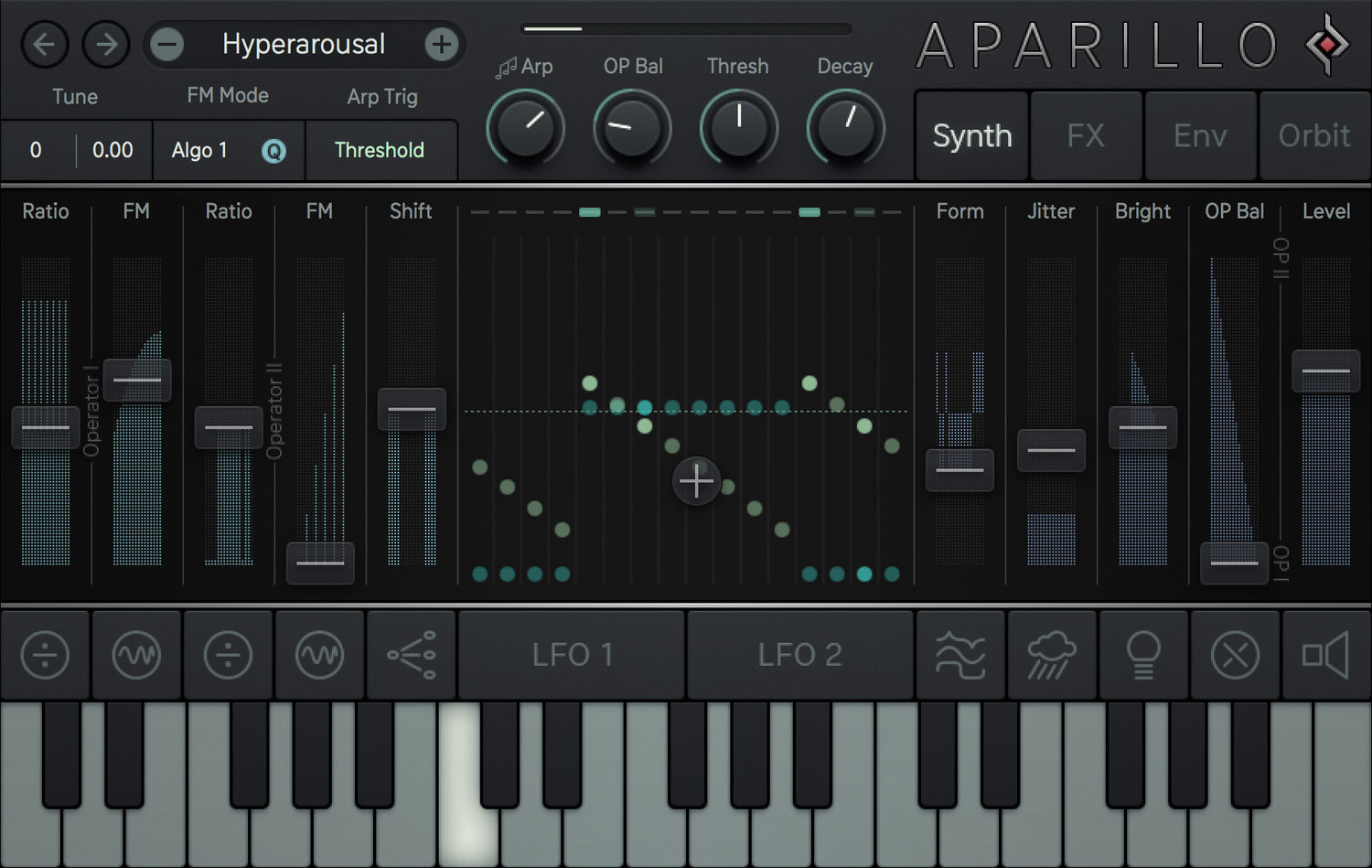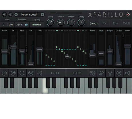 Aparillo is an advanced 16-voice FM synthesizer, tailored for majestic sonic motions. A clever arrangement of synthesis, wave shaping, filtering, FX and modulation unfolds into a serious sound design tool for epic sonic creation. Make sure to check out the Orbiter, a mass-controller for immediate, instant blockbuster sounding themes.