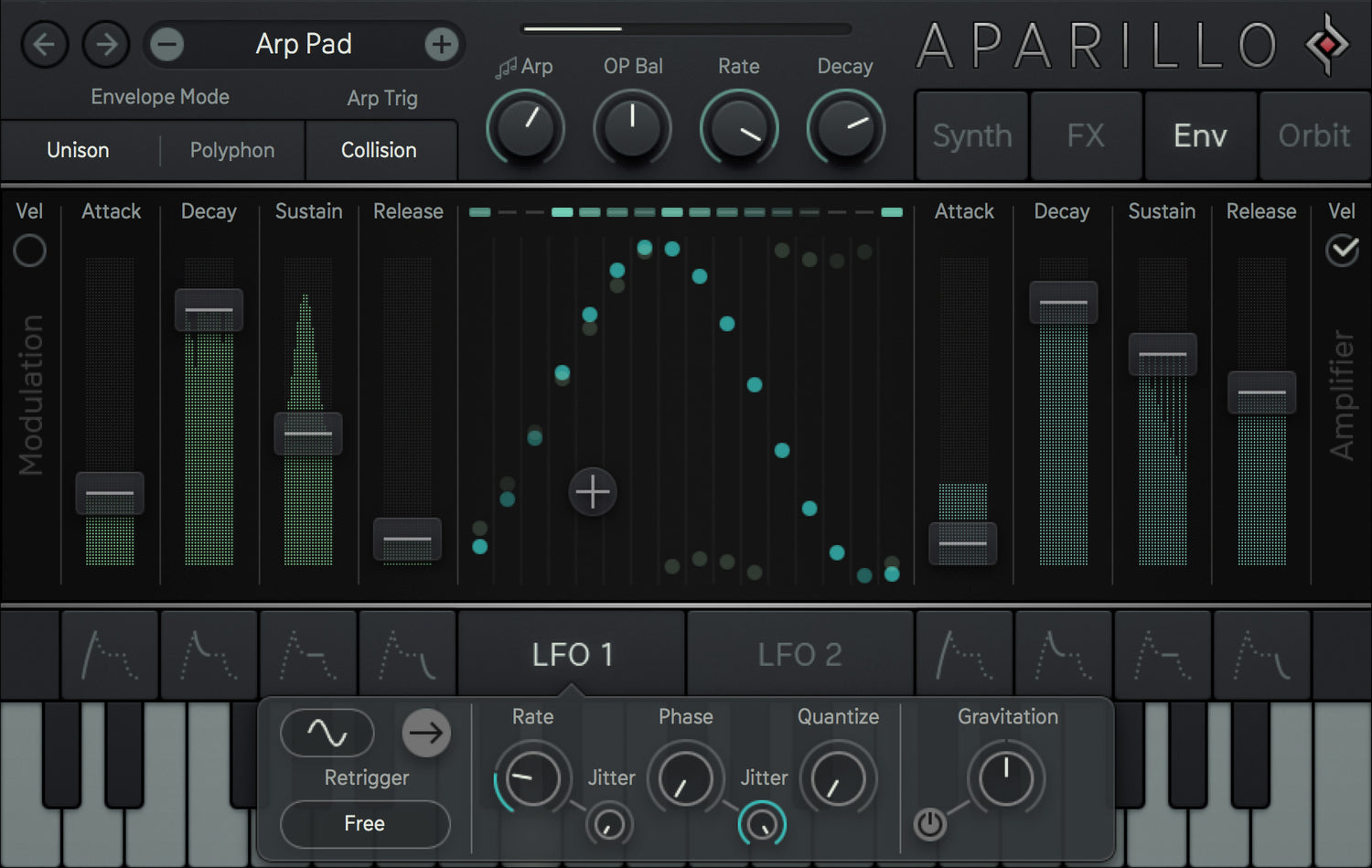 The Envelopes show off user definable slopes, looping modes, and polyphonic parameter modulation. The dual Complex LFO brings along some specialties like FM, Gravitation, Oneshot, S+H/Quantize, and the beautifully chaotic Collision Mode.