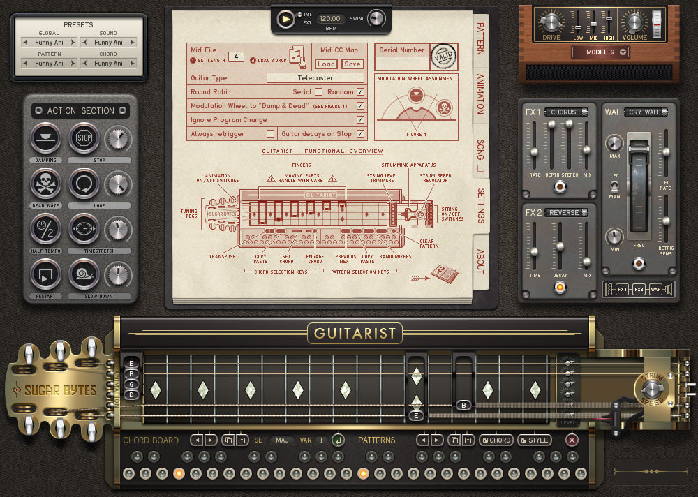 Guitarist is a virtual guitar that's designed to emulate rhythm parts played on an electric guitar. The actual guitar player has been transformed into a step sequencer system with a huge level of customisation when it comes to chords or fingering patterns and a detailed control over authentic nuance and expression.