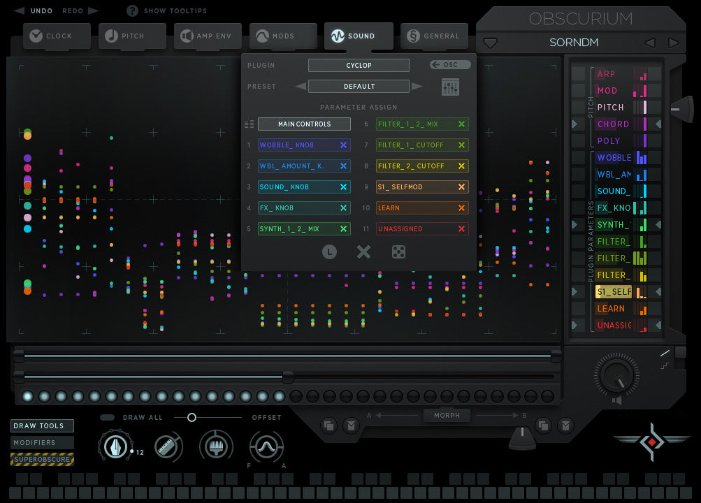 Setting this up couldn't be easier - pick any of the plug-in's presets, use a random mode to assign parameters or use the Learn function in Obscurium's hosting options.