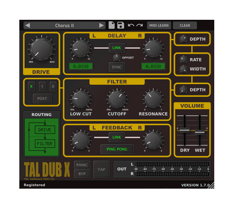 TAL-Dub-X is a remake of our popular original freeware TAL-Dub plug-in with a lot of additional features.