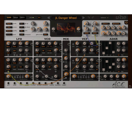 ACE takes after hardware modular synthesizers, although it is not a truly modular design, more correctly it is semi-modular. ACE has a default fixed architecture (like for instance the ARP 2600), which means you can start making noise immediately ‘out-of-the-box’. Any default routing can be overridden by patching cables, which means that the options are practically limitless.