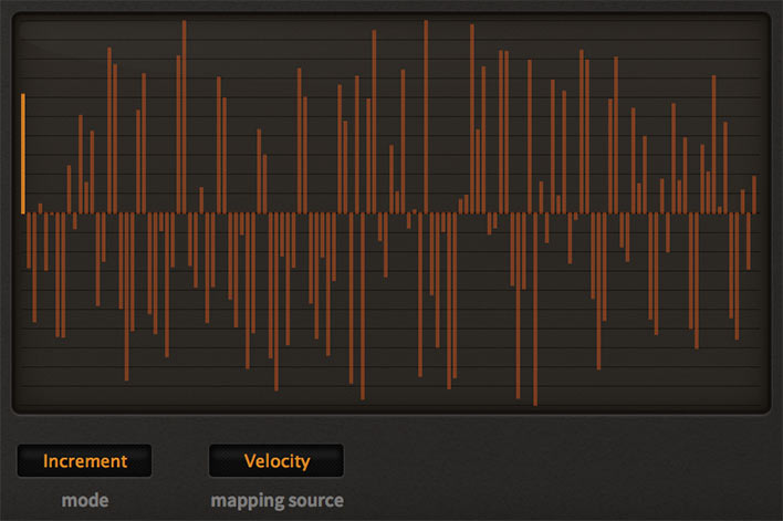 Not typically found in analogue synthesizers, ACE’s Mapping Generator is a useful addition with a variety of uses. The Mapping Generator is a list of up to 128 values. You can use the drawing tools to edit the values and create your own patterns, or choose pre-built shapes. This map can be stepped through for each played note, it can create per-note offsets, it can transform any modulation source or be used as the LFO2 waveform.