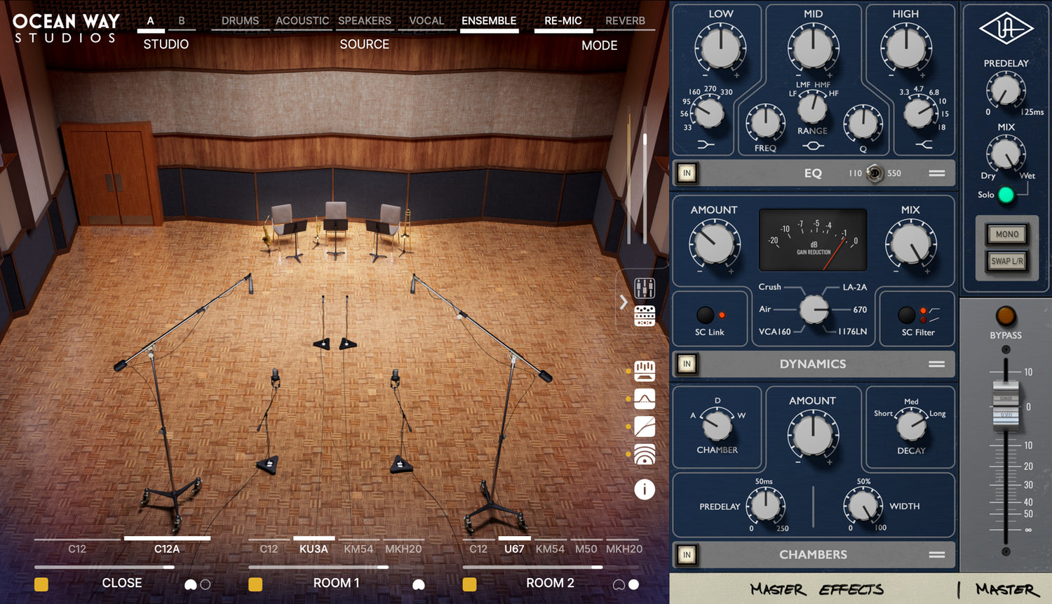 Ocean Way Studios Deluxe goes far beyond the original award-winning UAD plug-in, giving your productions the legendary sound of music’s most historic rooms, reverb chambers, and microphones. Powered by UA’s exclusive Dynamic Room Modeling technology, now you can easily add the same dimension, space, and tone heard on recordings from Ray Charles and Frank Sinatra to Whitney Houston, Radiohead, and Beck.1