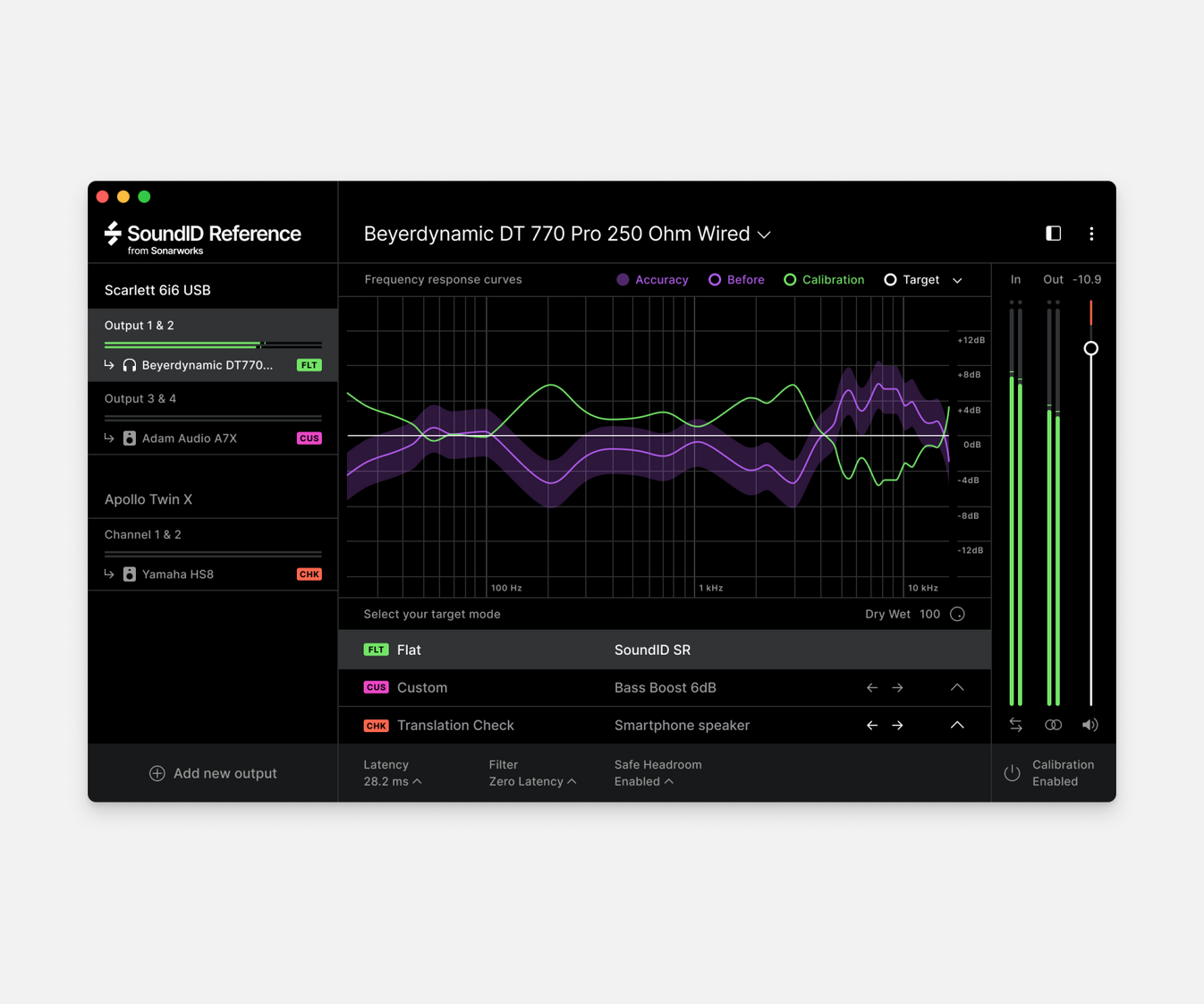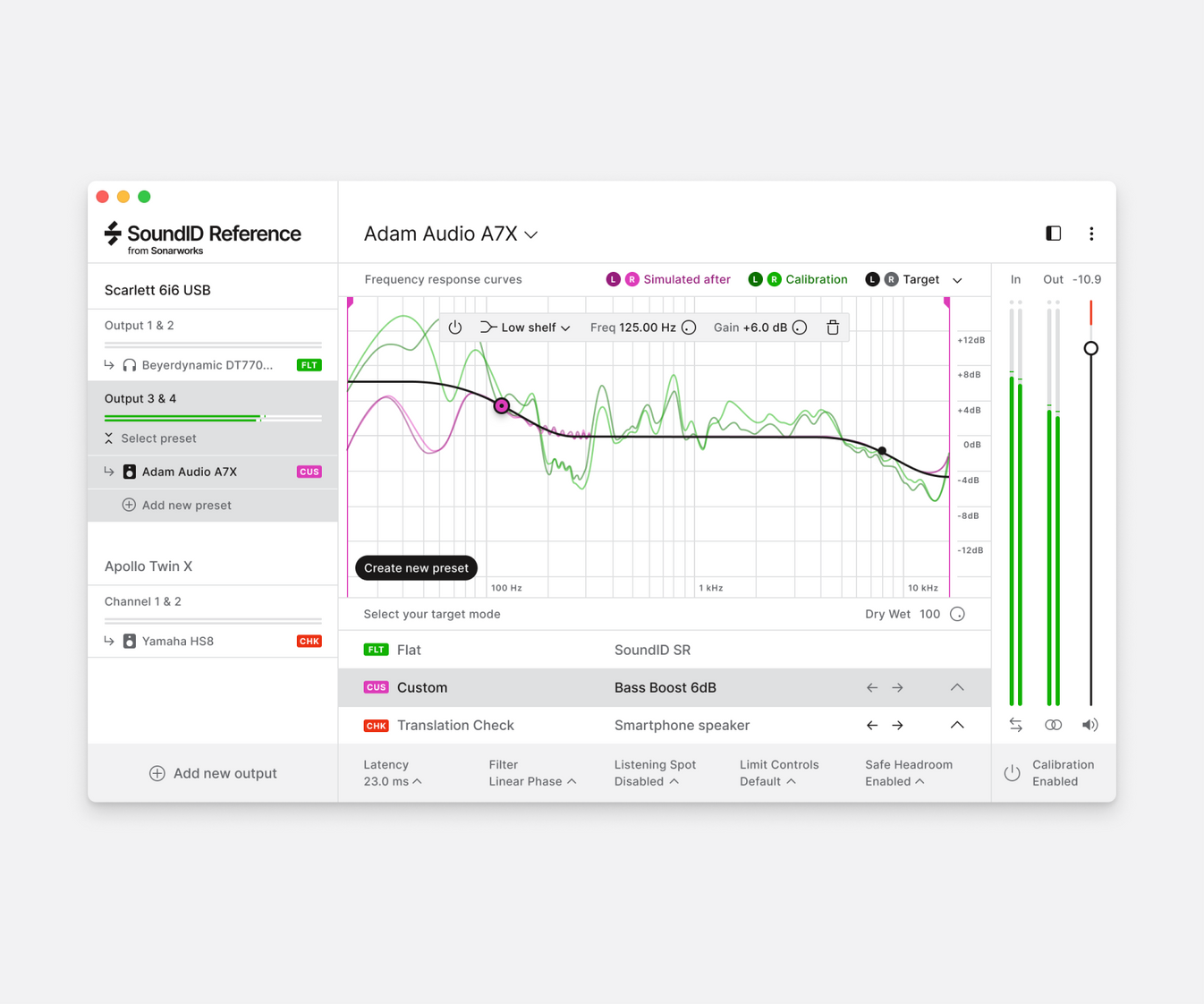 Unify all of your monitoring devices under the same reference sound and switch seamlessly between your speakers and headphones. With this upgrade you will add speaker calibration in addition to an already existing set of features offered by SoundID Reference for Headphones. As a result you will hear every detail across the frequency response spectrum and will trust every mixing decision you make.