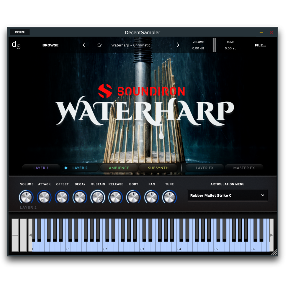 Waterharp 3.0 includes an upgraded user interface for both Kontakt 6 (full version 6.2.2) and the free Decent Sampler engine. We’ve optimized presets to put each category right at your fingertips, with easy articulation menu loading. We've also added a new range of deep ambiences, synths and sound-designed atmospheres, all hand-crafted from the original instrument source.