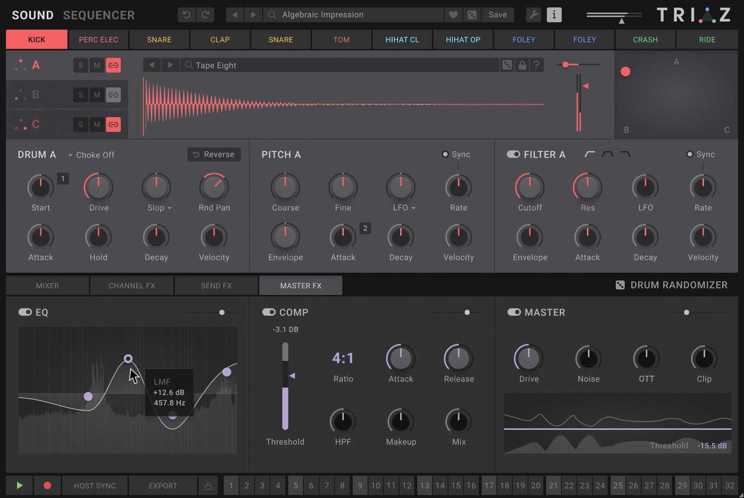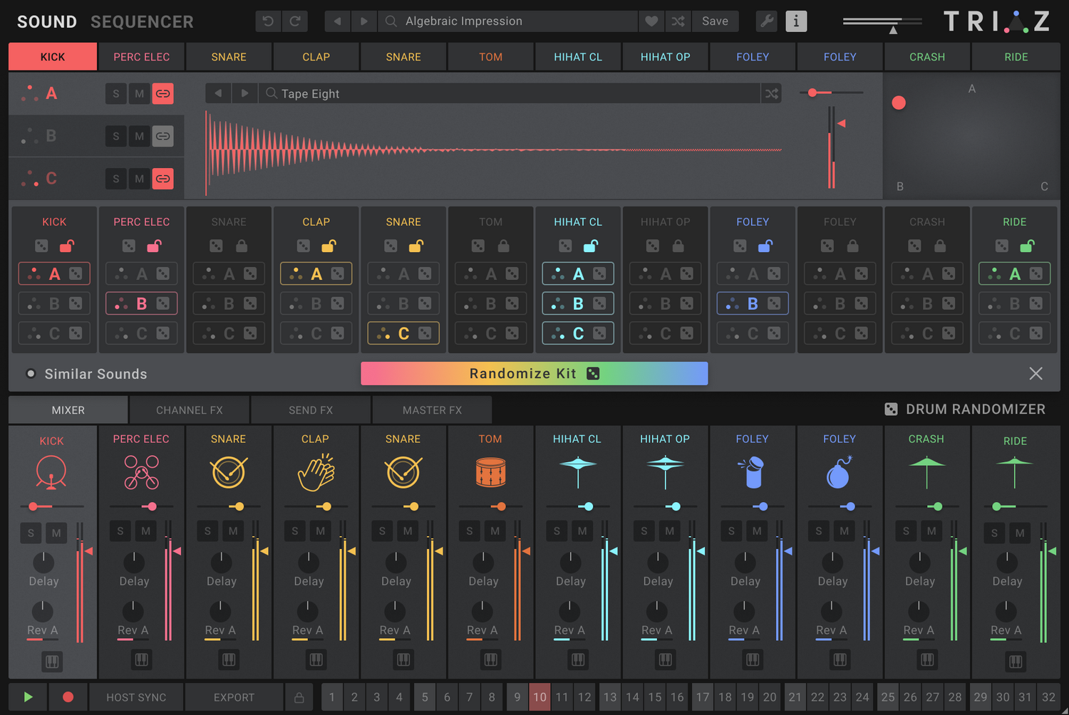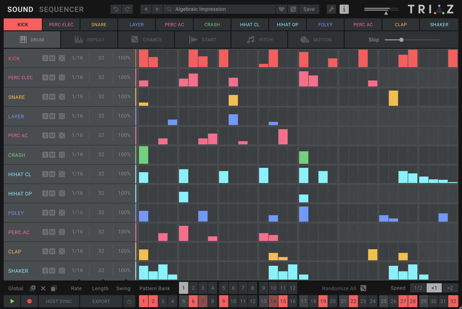Triaz is a next-generation drum engine that redefines what’s possible in beat production. Combining lightning-fast polyrhythmic sequencing, powerful drum layering, per-step parameter modulation, and a groundbreaking randomization engine, Triaz lets you create, tweak, and evolve your beats with unmatched speed and depth.