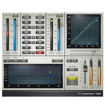 The classic C1 combines a musically pleasing dynamics sound with rich features and functionality: Compression, expansion, upward expansion, gating, dynamic filtering, sidechaining, and internal sidechain filtering—all in one plugin.