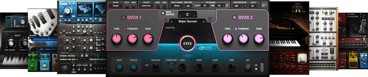 With both Ovox, your voice can generate chords, harmonize, vocode, synthesize, re-tune, arpeggiate, modulate, trigger MIDI instruments, do sound design, and more. There’s nothing like OVox for vocals.