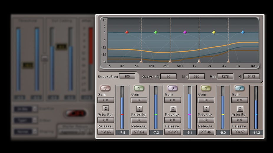 Unlike conventional multiband limiters, Waves’ Peak Limiting Mixer technology treats the five bands as part of an integrated whole, and distributes attenuation in each band as needed. The result: level and clarity.
