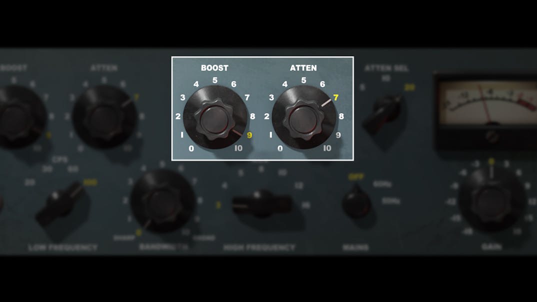 Lows without mud, highs without harshness: Mix fat, punchy bass, drums, and synths with the EQP-1A’s three high-cut frequencies, along with separate boost and attenuation controls for 4 low frequencies and 7 high frequencies (with bandwidth parameter).