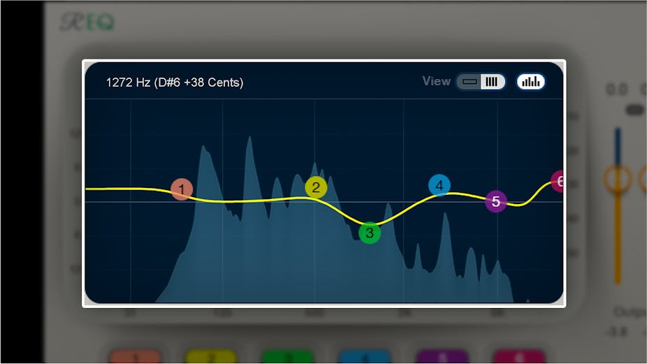The real-time analyzer shows precisely how EQ adjustments affect the frequency response, but there’s more: hover over the display, and the display shows the frequency under the cursor in both Hertz and musical notes.